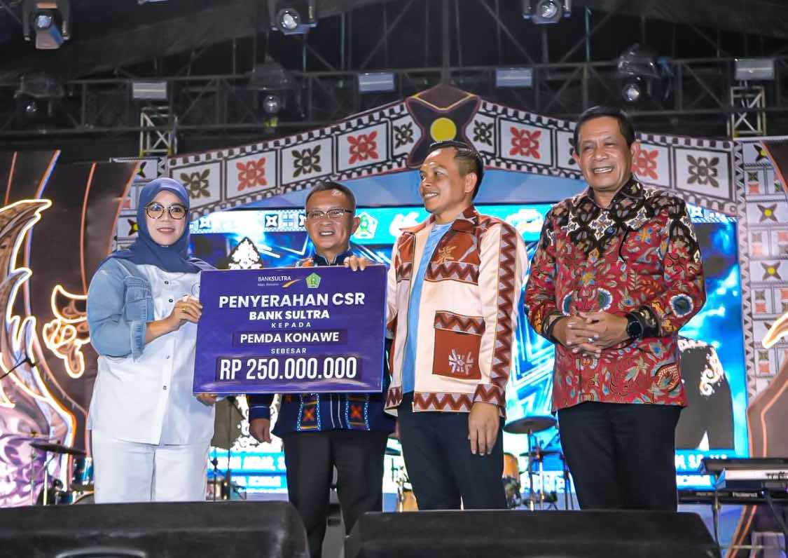 Acara Puncak Penutupan Rangkaian Kegiatan HUT Kabupaten Konawe ke-66, Bank Sultra secara resmi menyerahkan bantuan Corporate Social Responsibility (CSR) senilai Rp250.000.000 (Dua Ratus Lima Puluh Juta Rupiah) yang dialokasikan untuk program beasiswa pendidikan. IDNK, KENDARI – Bank Sultra menunjukkan komitmen nyatanya dalam mendukung peningkatan kualitas sumber daya manusia di Sulawesi Tenggara. Bertepatan dengan Acara Puncak Penutupan Rangkaian Kegiatan HUT Kabupaten Konawe ke-66, Bank Sultra secara resmi menyerahkan bantuan Corporate Social Responsibility (CSR) senilai Rp250.000.000 (Dua Ratus Lima Puluh Juta Rupiah) yang dialokasikan untuk program beasiswa pendidikan.
