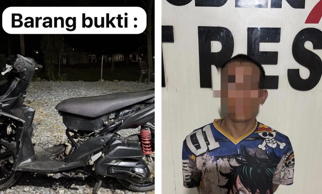“Modus pelaku adalah memanfaatkan kondisi kunci kontak motor yang sudah rusak, lalu mencoba menyalakannya menggunakan kunci motor miliknya hingga akhirnya berhasil,” jelas Welli.