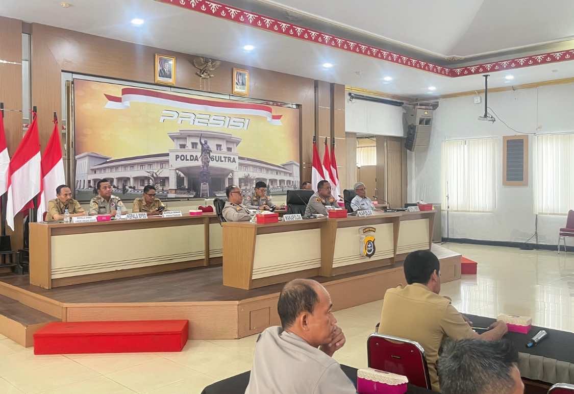 Kegiatan yang digelar secara virtual melalui zoom meeting tersebut berlangsung di Aula Dhacara Polda Sultra dan melibatkan berbagai kementerian serta lembaga strategis, di antaranya Kementerian Lingkungan Hidup, Kementerian Kehutanan, Badan Nasional Penanggulangan Bencana (BNPB), serta Badan Meteorologi, Klimatologi, dan Geofisika (BMKG).