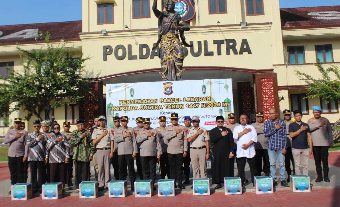 IDNK, KENDARI – Kapolda Sulawesi Tenggara (Sultra) Irjen Pol Didik Agung Widjanarko, S.I.K., M.H. memimpin langsung penyerahan bingkisan Lebaran secara simbolis kepada berbagai unsur masyarakat di Lapangan Apel Mapolda Sultra, Selasa (10/3/2026).
