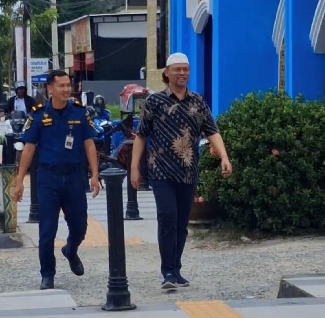 Seorang narapidana kasus korupsi tambang di Kabupaten Kolaka Utara (Kolut), Sulawesi Tenggara, bernama Supriadi mantan Kepala Syahbandar Kolaka menggunakan pakaian batik songkok putih terlihat berkeliaran di Kota Kendari dikawal seseorang dari Syahbandar Kendari.(Foto: Istimewa) IDNK, KENDARI – Seorang narapidana kasus korupsi tambang di Kabupaten Kolaka Utara (Kolut), Sulawesi Tenggara, bernama Supriadi, menjadi sorotan setelah diduga bebas berkeliaran di Kota Kendari pada Selasa (14/4/2026) siang.