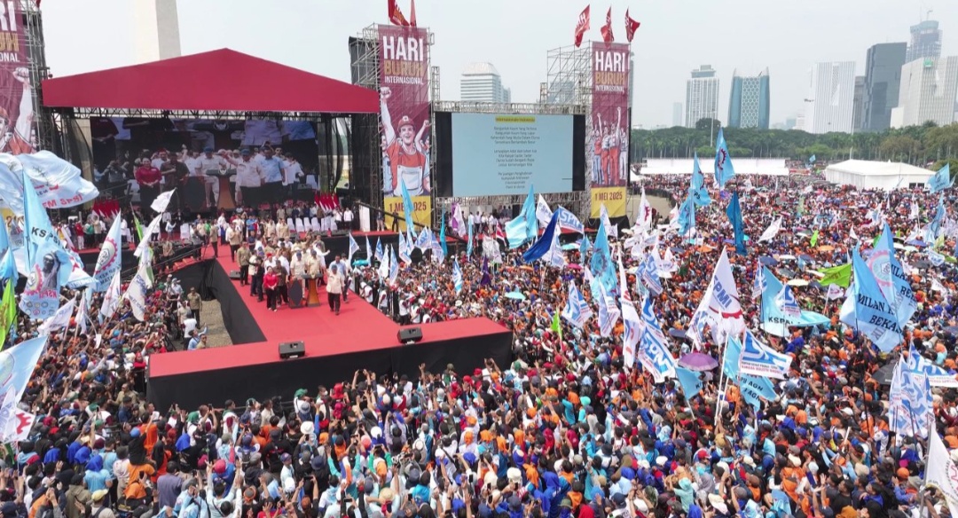 THEASIANET, JAKARTA-Peringatan Hari Buruh Internasional di Monumen Nasional, pada Kamis, 1 Mei 2025 dihadiri langsung oleh Presiden Prabowo Subianto. Acara ini dihadiri lebih dari 200.000 buruh dan pekerja dari berbagai daerah di Tanah Air. Mereka berkumpul untuk menyampaikan aspirasinya dalam momentum yang diperingati setiap tahunnya ini.