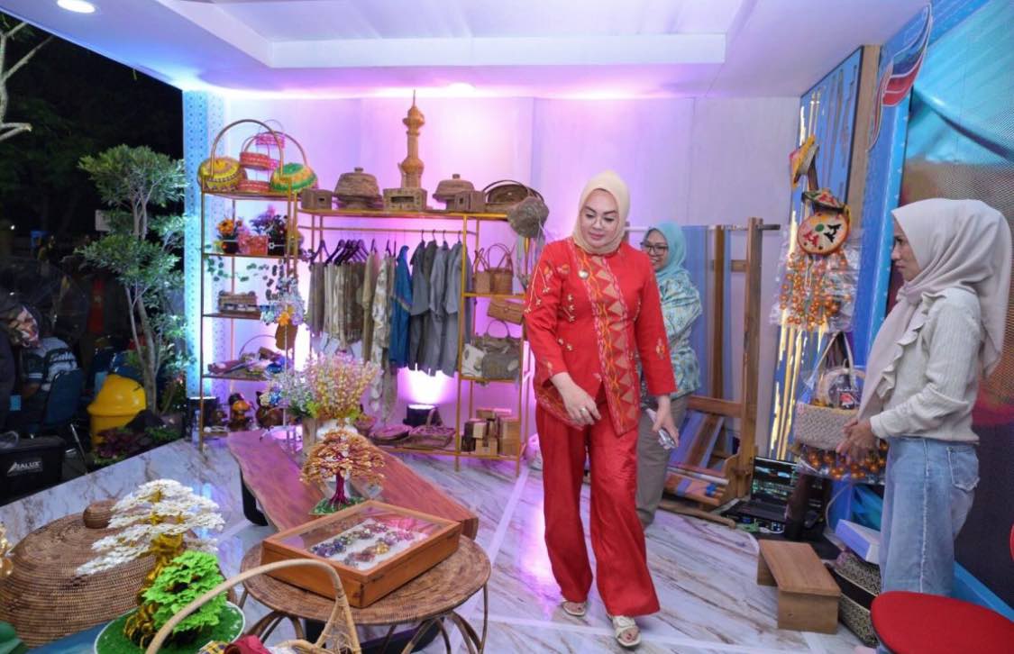 Wali Kota Kendari bersama Wakil Wali Kota Kendari juga berkunjung ke stand pameran Pemerintah Kota Kendari dan Dekranasda Kota Kendari yang banyak memamerkan kerajinan-kerajinan lokal khas Kota Kendari. IDNK, KENDARI – Wali Kota Kendari, Siska Karina Imran, SKM bersama Wakil Wali Kota Kendari, Sudirman didampingi Ketua TP PKK Kota Kendari, Shintya Putri Anawula menghadiri Pembukaan Harmoni Sultra di Tugu Persatuan eks MTQ, Jumat (24/4/2026) malam.